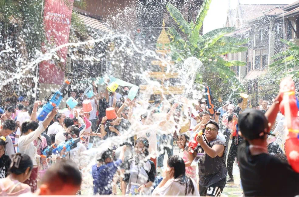 在音乐的律动中,在水的欢歌里,一场盛大的狂欢节正在傣族古镇热烈上演。