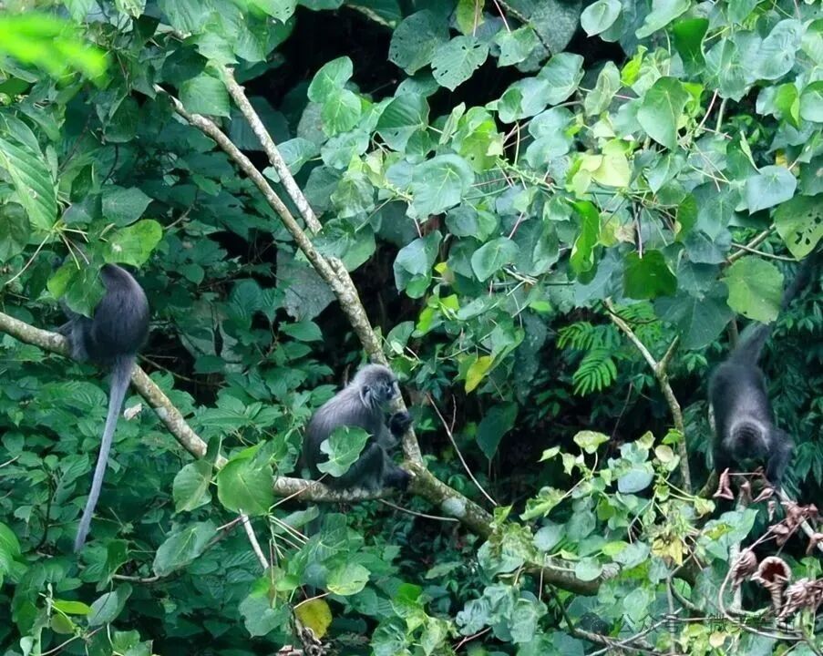 而在德宏菲氏叶猴自然公园,雨并未阻隔灵动的身影。护林员杨开所轻声指引:“看,它们来了。” 树冠层中,灰黑色的菲氏叶猴轻盈腾挪,带着幼崽在挂满雨滴的枝叶间觅食穿梭。“雨季枝叶繁茂,为它们提供了丰富的食物资源,” 杨开所低声说,目光紧随着林间跳跃的生命轨迹,“但这份菲氏叶猴与人相处的和谐,需要我们共同守护,保持距离,保持静默。” 猴群偶尔投来的警觉一瞥,提醒着人类旁观者应有的克制与敬意。