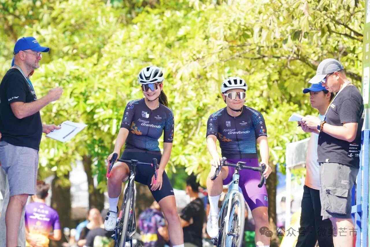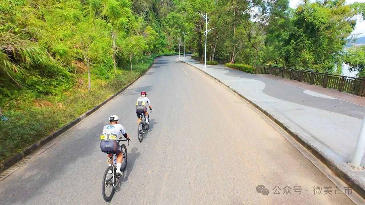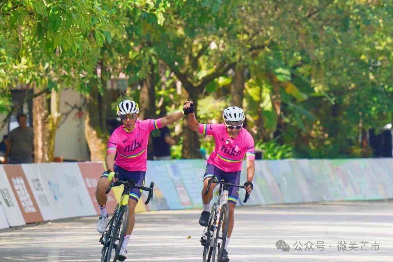 作为本届赛事的创新亮点,双人计时赛设有男双、女双、混双三个组别,吸引了众多骑行爱好者组队参赛。比赛起终点均设于圣水庄园旁,赛道沿孔雀湖环湖路展开,全程9公里,累计爬升108米,途经同心桥、孔雀湖酒店、弘映山庄等多个地标,既考验选手的骑行实力,又让大家在竞技中饱览芒市的自然美景。赛事采用独特的计分规则,以团队第二名冲线成绩作为最终成绩,强化了搭档间的协作意识,打破了传统单人竞技的局限。