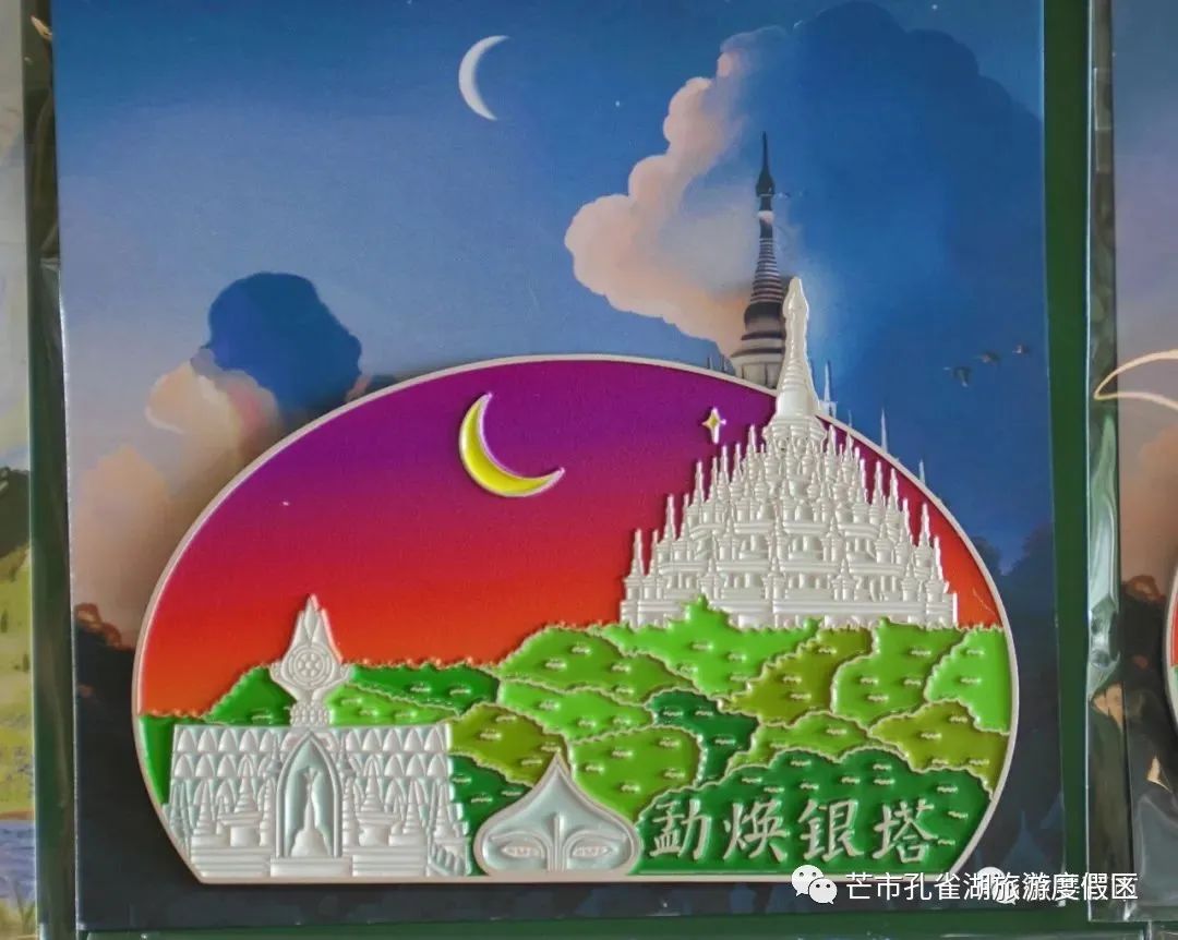 雷牙让书店的文创产品都是本地艺术家 原创设计 匠心独运将“美景”与“文化”完美的融合,比如具有芒市特色的冰箱贴,有与星月相辉的勐焕银塔,也有刻着芒市经纬度的勐焕大金塔。
