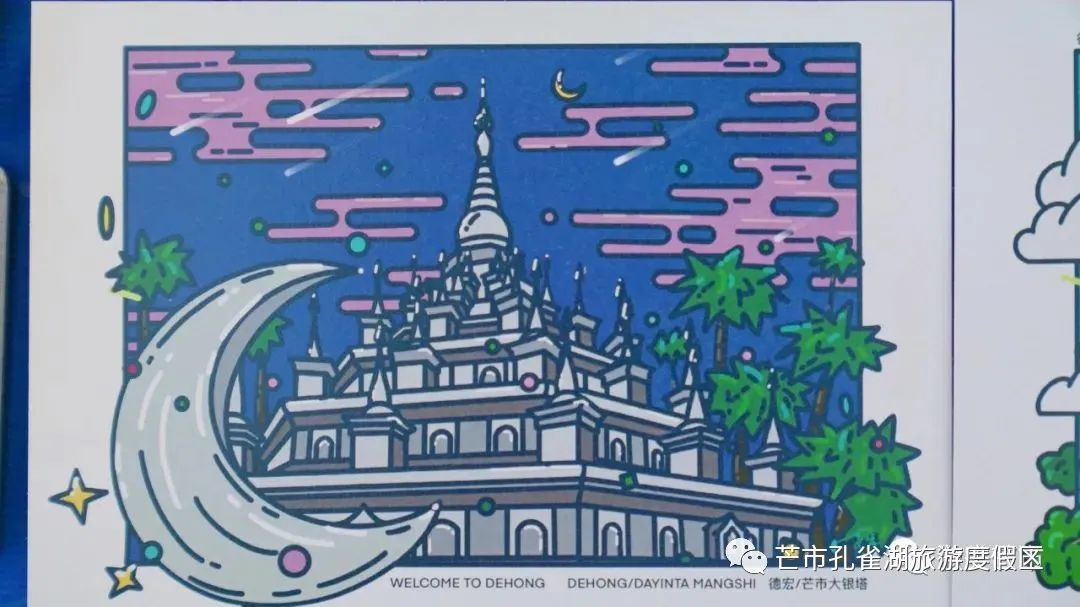 Hey DeHong的设计师以芒市城内自然景观和人文景观为创作背景,对这些景点进行了艺术加工形成最近流行的手绘风文创产品。