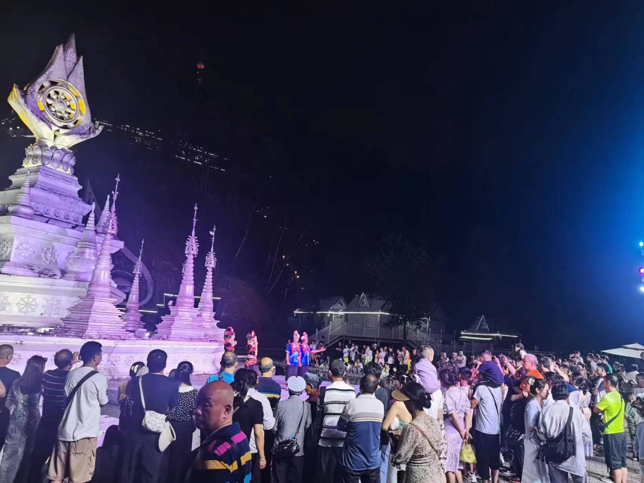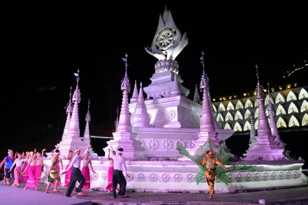 夜幕下的勐焕银塔,与白天呈现出不同的美,在纯白灯光衬托下,伴随着美妙的风铃声,它的美是浪漫的。所以——勐焕银塔景区上演的精彩演出你看了吗?