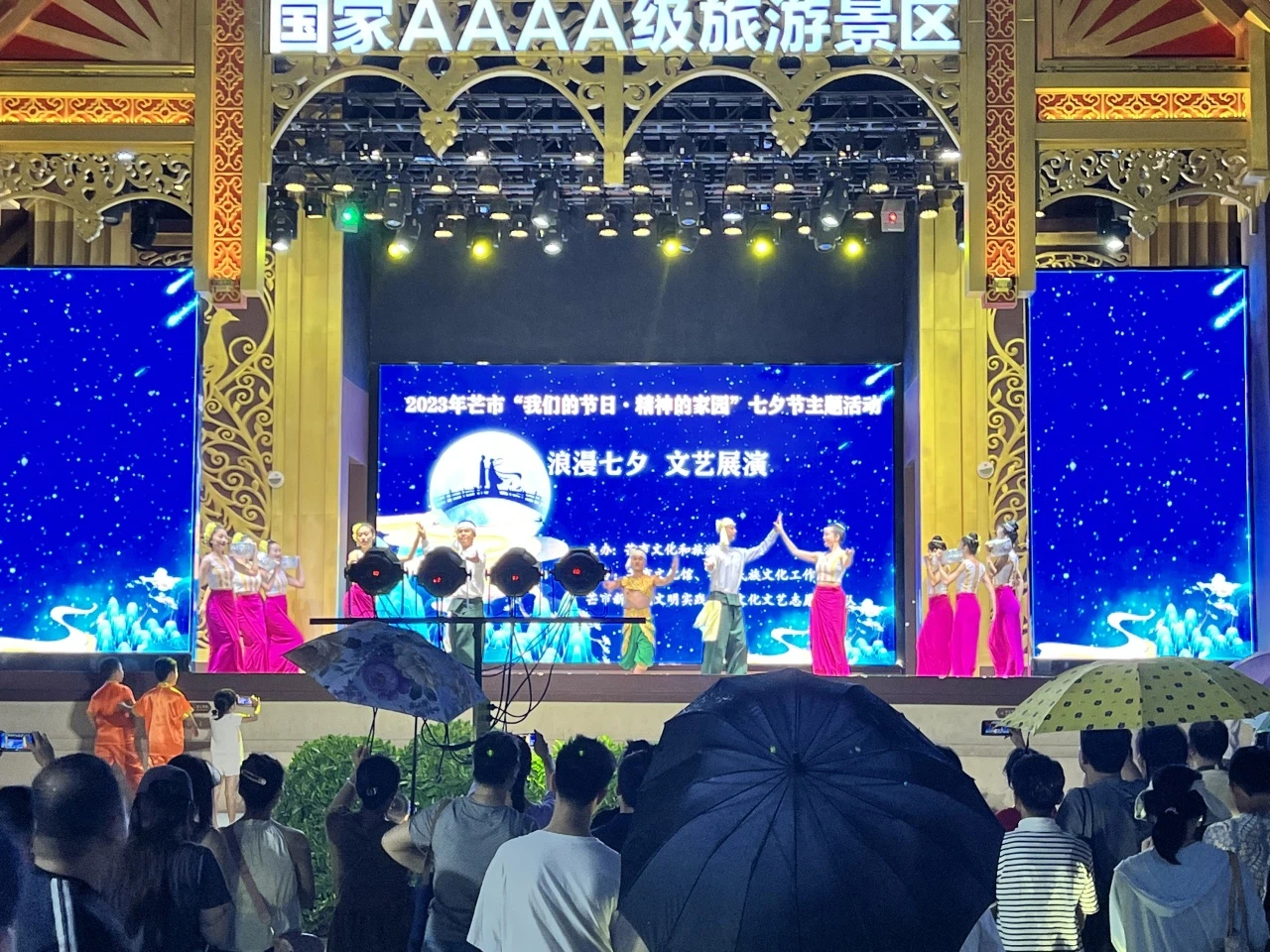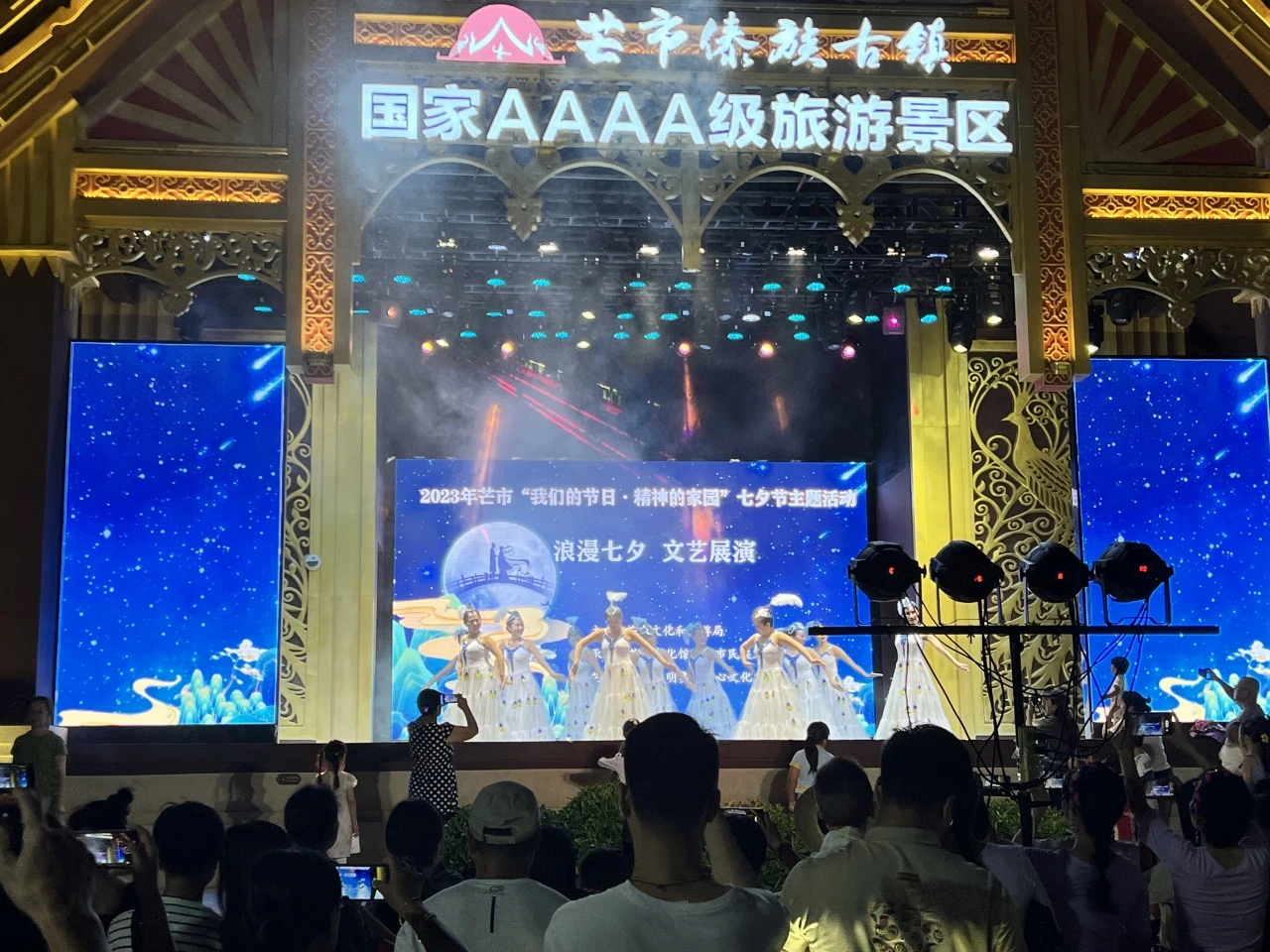 傣族古镇是国家4A级旅游景区、国家级文化旅游夜间消费聚集区,每天晚上的夜间文化都丰富多彩。